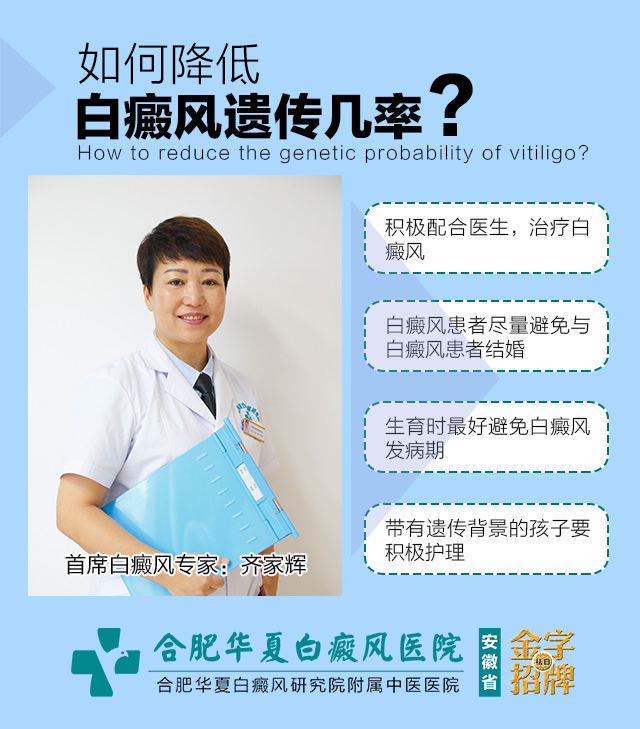 很多人会关心白癜风会不会遗传给下一代,尤其是结了婚患上白癜风的男女。合肥华夏白癜风医院齐家辉主任指出:白癜风是有一定遗传几率的。